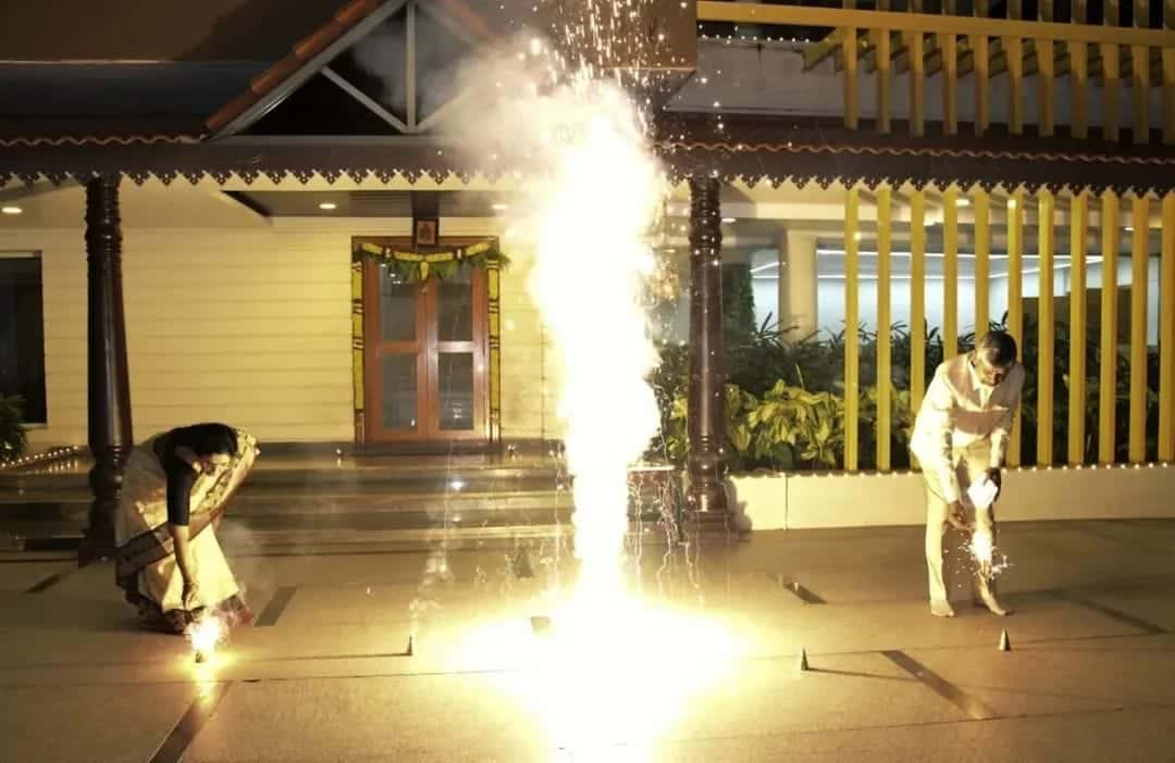 ఆంధ్రప్రదేశ్లో దీపావళి సంబరాలు ఘనంగా కొనసాగుతున్నాయి. పల్లె, పట్టణాలు, నగరాలు అని తేడా లేకుండా వీధులన్నీ ప్రజలతో నిండిపోయాయి. సోమవారం సాయంత్రం నుంచే వయసుతో సంబంధం లేకుండా ప్రజలంతా రోడ్లపైకి వచ్చి టపాసులు పేలుస్తూ ఘనంగా సంబరాలు చేసుకుంటున్నారు. ఈ నేపథ్యంలో ఆంధ్రప్రదేశ్ ముఖ్యమంత్రి నారా చంద్రబాబు నాయుడు కుటుంబసమేతంగా దీపావళి సంబరాలు చేసుకున్నారు. సతీమణి నారా భువనేశ్వరితో కలిసి పూజలు చేసిన ముఖ్యమంత్రి.. అనంతరం టపాసులు పేలుస్తూ దీపావళి సంబరాలు చేసుకున్నారు. కాకర పువ్వొత్తులు, చిచ్చుబుడ్లు కాలుస్తూ కుటుంబంతో ఆనందంగా గడిపారు. ఈ సందర్భంగా ఎక్స్ వేదికగా తెలుగు ప్రజలందరికీ దీపావళి శుభాకాంక్షలు తెలిపారు.