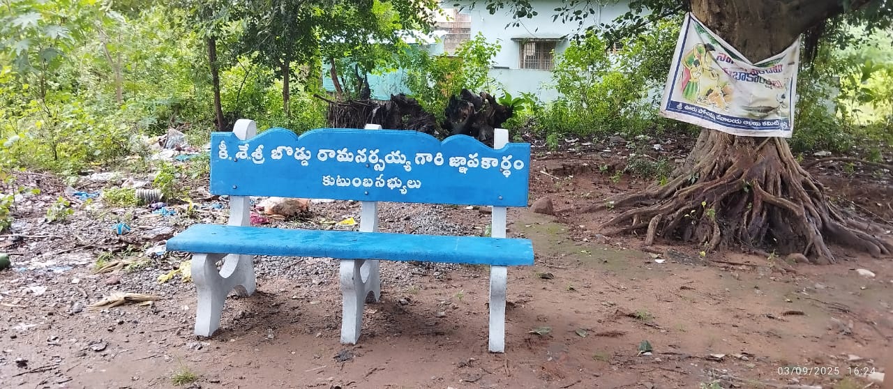 మంచిర్యాల: క్రి శే బొడ్డు రాంనర్సయ్య గారి జ్ఞాపకార్థం వారి కుటుంబసభ్యులు కన్నలబస్తీ బెల్లంపల్లి లో సిమెంట్ బెంచ్ లు ఏర్పాటు చేయడం జరిగింది. అదేవిధంగా వారి పేరుపై అన్నదాన కార్యక్రమాలు చేస్తున్నారు. అమెరికాలో ఉద్యగం చేస్తున్న కుమారుడు ముందు ముందు రోజుల్లో వారి తండ్రిగారి పేరుపై పలు సేవాకార్యక్రమాలు చేస్తామని తెలిపారు.