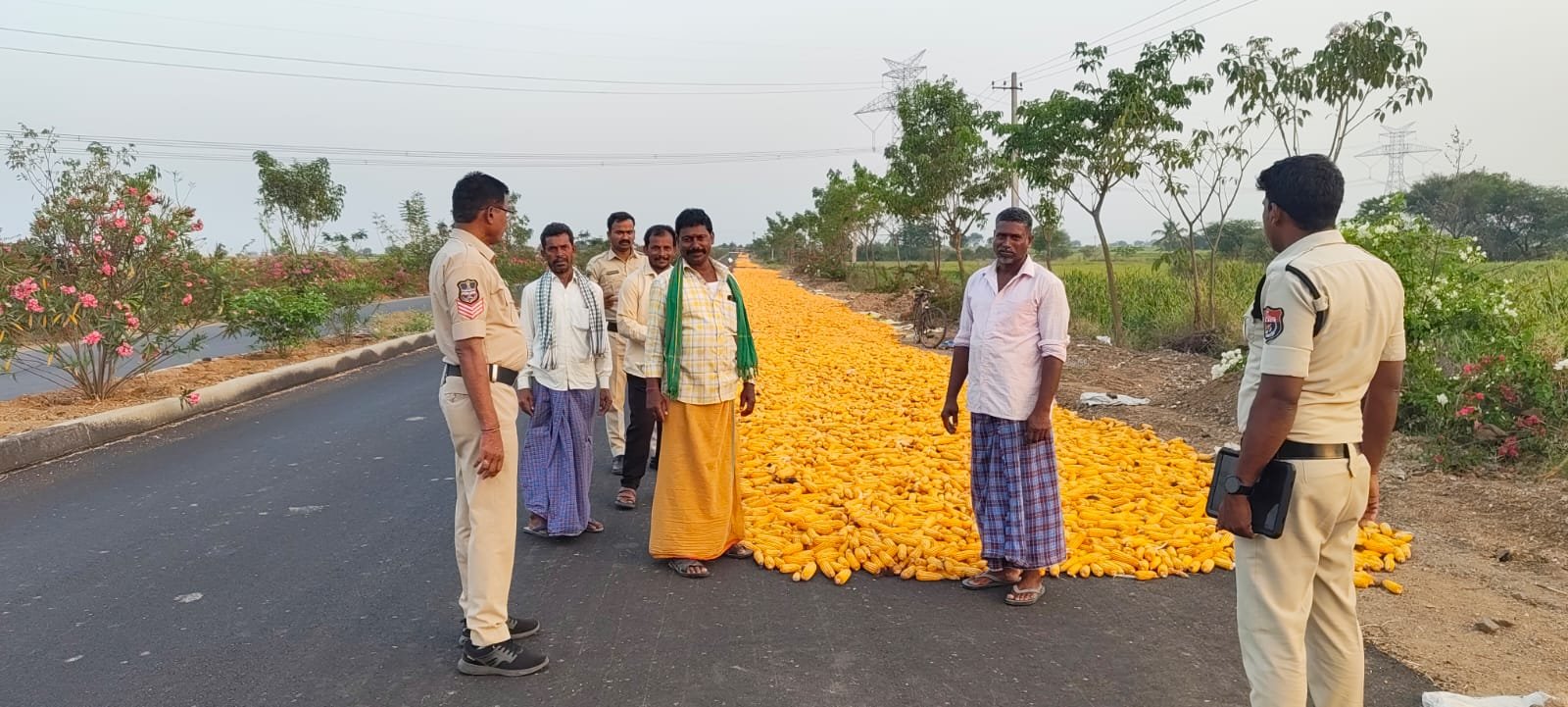 రోడ్లపై వరి ధాన్యం ఆరబెట్టొదు.. ప్రమాదాల నివారణకై.. రైతులకు అవగాహనకల్పిస్తున్న పోలీసులు
