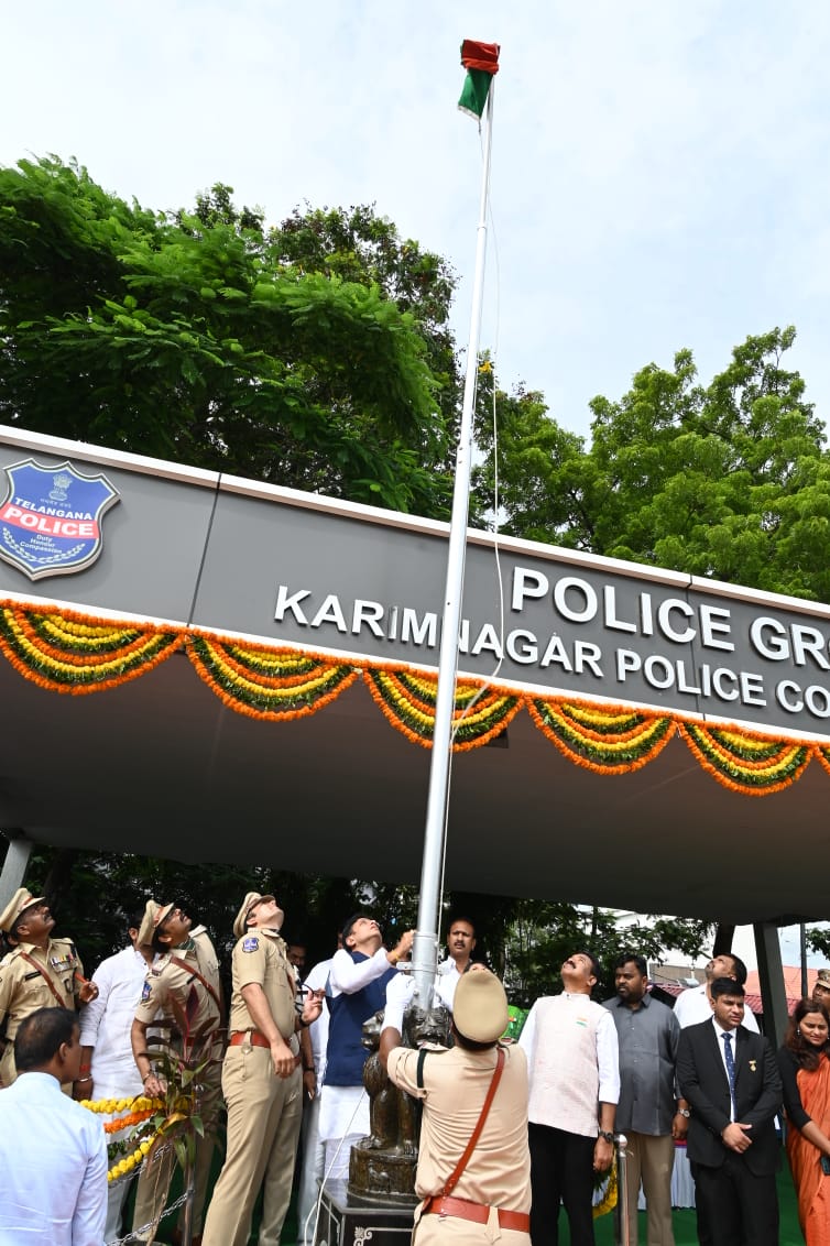 కరీంనగర్ జిల్లా కేంద్రంలోని పోలీస్ పరేడ్ గ్రౌండ్లో రాష్ట్ర ఐటీ శాఖ మంత్రి శ్రీధర్ బాబు 79 వ స్వాతంత్య్ర వేడుకలలో పాల్గొన్నారు.ఈ సందర్భంగా జాతీయ జెండాను ఎగురవేశారు.అనంతరం పోలీస్ ల గౌరవ వందనం స్వీకరించారు. ప్రభుత్వ ఉత్తమ ఉద్యోగులకు ప్రసంశ పత్రాలను అందజేశారు. అనంతరం మంత్రి విలేకర్ల సమావేశంలో మాట్లాడుతూ .కృష్ణా గోదావరిలో తెలంగాణ వాటా తేల్చాలి ఇచ్చంపల్లి, తుమ్మిడిహెట్టి తెలంగాణ ప్రభుత్వ నిర్మించే ప్రాజెక్టులకు కేంద్ర అనుమతి ఇవ్వాలి.కృష్ణా గోదావరిలో తెలంగాణ వాట తేల్చి, తమ ప్రాజెక్టులకు అనుమతిచ్చాక పొరుగు రాష్ట్రం ఏపీ ఏ పేరుతో ఏ ప్రాజెక్టు కట్టుకున్న తమకు అభ్యంతరం లేదు.తెలంగాణ రైతుల ప్రయోజనాలను కాపాడమే కాంగ్రెస్ ప్రభుత్వ లక్ష్యం. కృష్ణా గోదావరి లో మన వాటా మనకు దక్కే వరకు తమ పోరాటం ఆగదు.